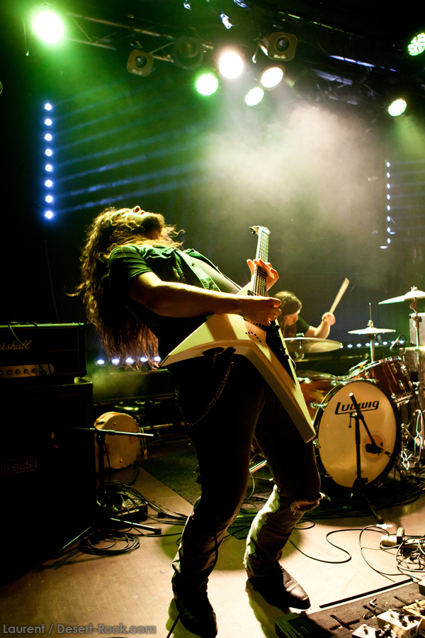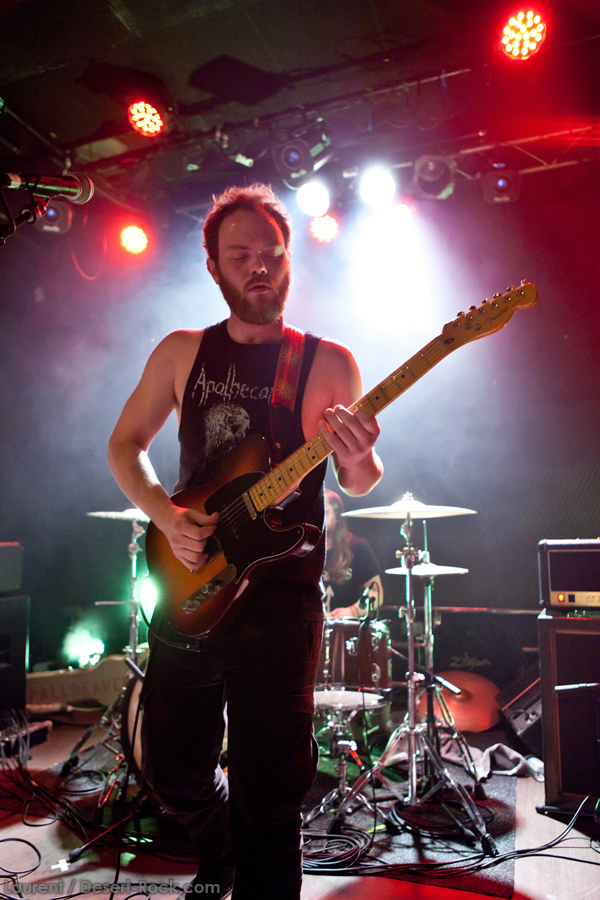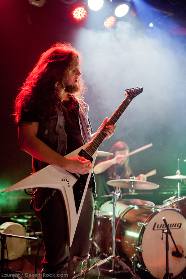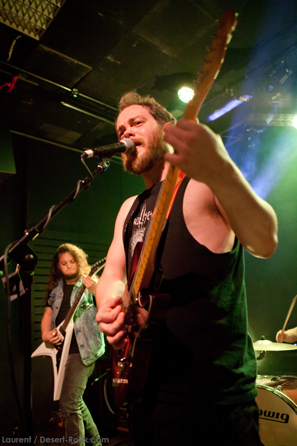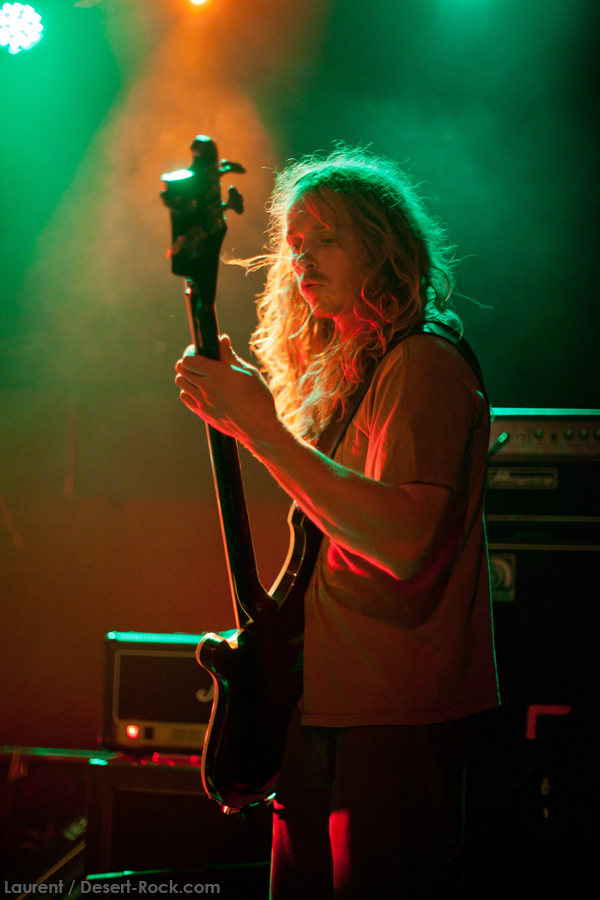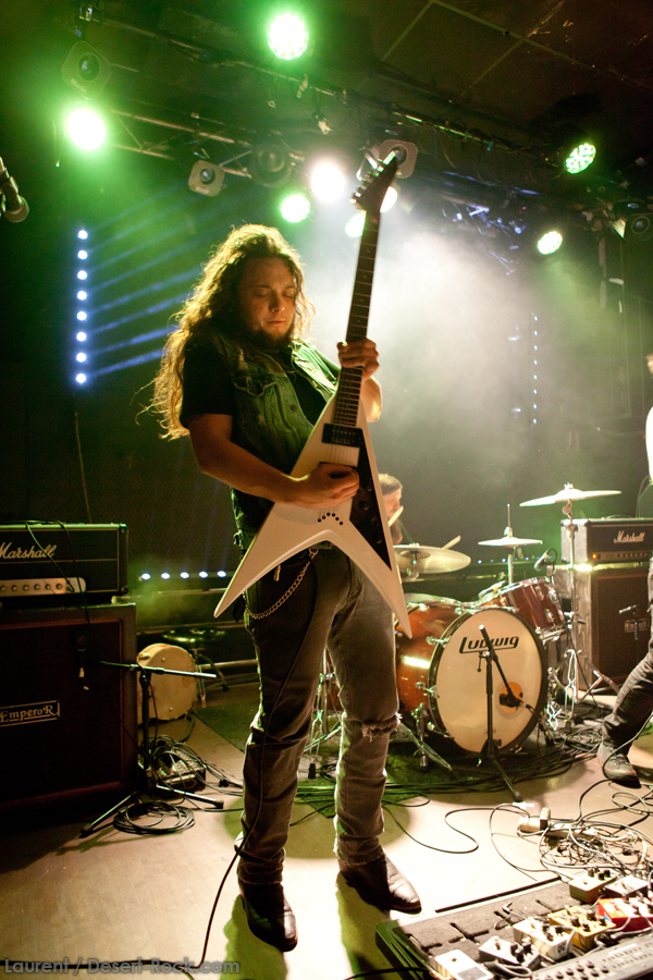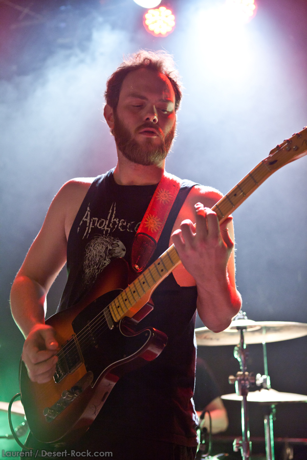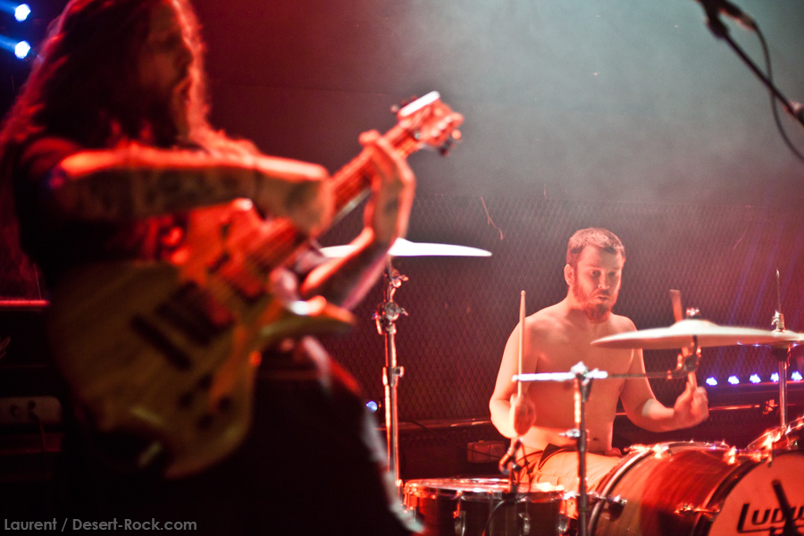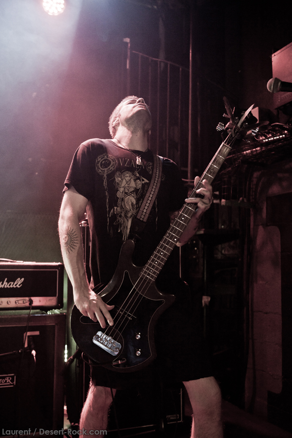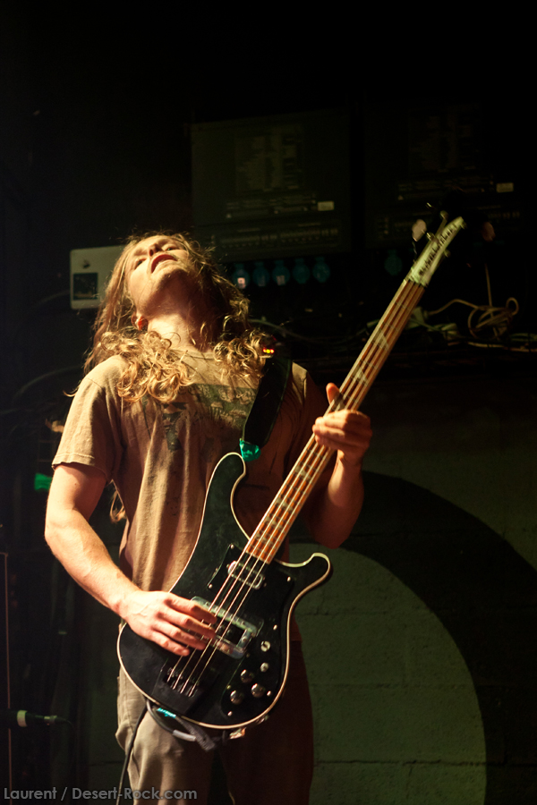 Quand Pallbearer prend la scène après nous avoir fait poireauter une bonne heure après l’ouverture des portes, les bonhommes, mornes à souhait, prennent quelques minutes tranquilles pour accorder leurs instruments, sans mot dire. Puis le set débute dans la même austérité, propice il est vrai à leur doom introspectif. Les titres sont tous joués sur un tempo pachydermique, les montagnes de grattes étant occasionnellement percées par les vocaux de Brett Campbell. La communication avec le public est presque inexistante, le quatuor enchaînant leur poignée de titres longs et épiques sans réelle interruption. Tout ceci est très lourd, mais un peu monotone dans l’interprétation, à l’image de la prestation toute en sobriété (terme politiquement correct pour dire qu’il a presque l’air de s’ennuyer…) de Campbell. Heureusement les pauses de guitar hero de Devin Holt et l’énergie de Joseph Rowland (qui vit le set avec intensité, chantant les paroles sans micro tout au long du concert) maintiennent la tension tout du long. Reste un manque de relief sur la longueur un peu ennuyeux de la part des collègues de label de Yob. Au bout de trois quarts d’heure de set, Campbell décoche une petite vanne sur la « stomach flu » du batteur, mais surtout annonce la fin du set d’un solennel « we’ve only got one more song, but we’re gonna make it worthy », avant de se lancer dans le fiévreux « Foreigner », bien entendu, un titre puissant et envoûtant, probablement leur titre phare. Le final, propice à des avalanches de soli en harmonie parfaitement exécutés, avec un fond de samples de flûte discrets, vaut son pesant de cacahouètes. Le morceau passe bien et, clairement, remonte la barre d’un set de bonne qualité, mais qui aurait pu sinon sombrer dans l’ennui, après quasiment une heure.