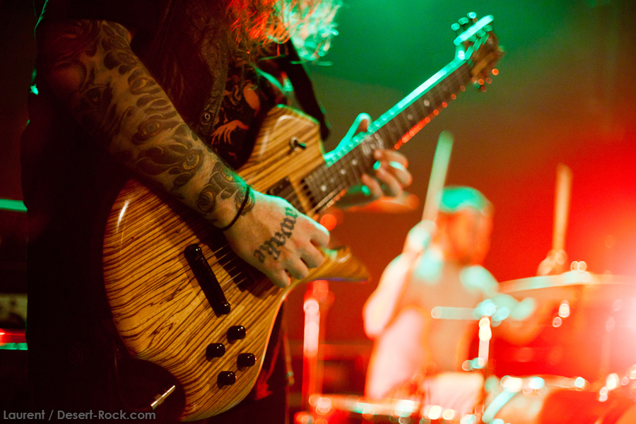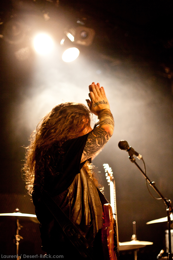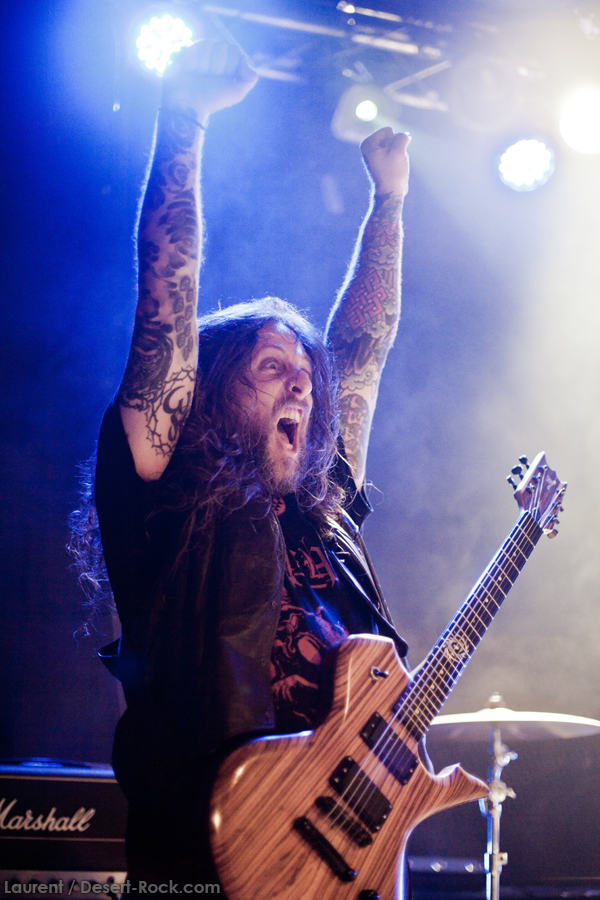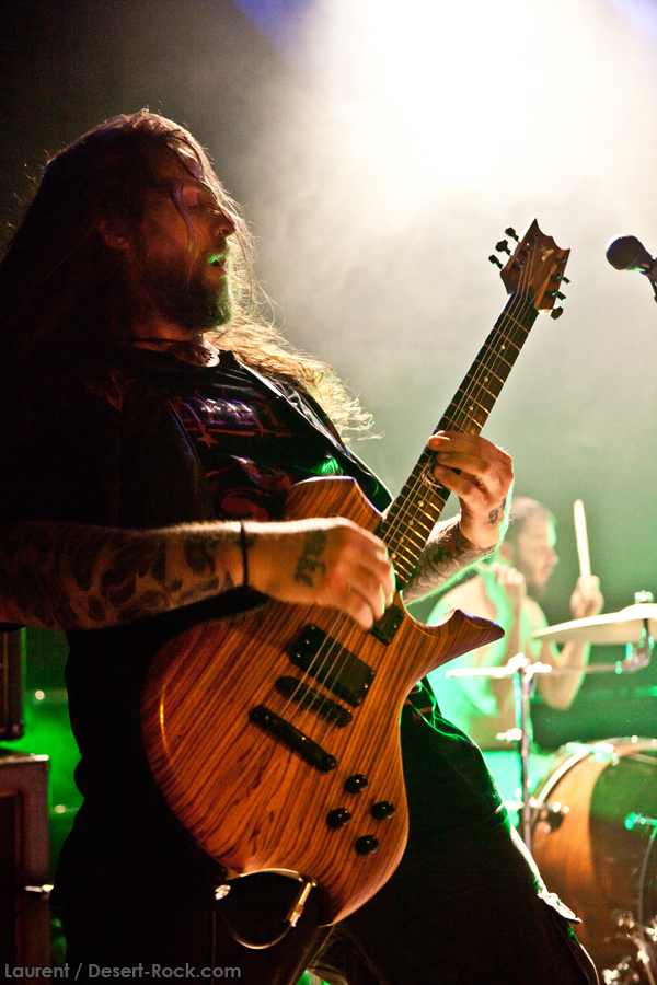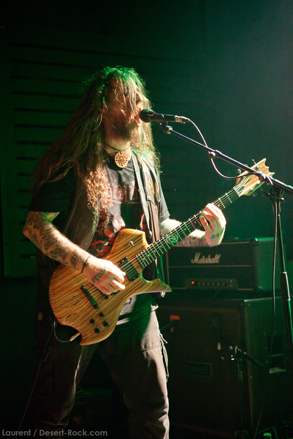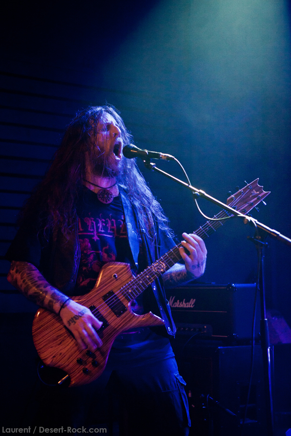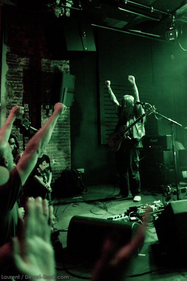Petit couac à l’issue de ce moment de forte émotion (propice à des applaudissements nourris), le groupe doit attendre quelques instants que la table de mixage reboote (elle aura sans doute été victime de surchauffe suite à la déferlante d’énergie encaissée), propice à une vanne de Scheidt (« it’s modern technology »…). Puis c’est le quart d’heure de « Adrift in the Ocean », petit bijou issu de leur album Atma, qui vient clôturer le set, alternant séquences atmosphériques presque tribales et passages de pure puissance doom. Sitôt le set fini, et avant même de plier leur matos, les bonhommes viendront copieusement saluer leur public, à l’image de Mike Scheidt, qui viendra s’asseoir sur un retour devant la scène pour venir discuter avec qui le veut bien, signer des disques, répondre aux questions, etc… Une conclusion en douceur en quelque sorte pour une soirée qui fut riche en émotions.